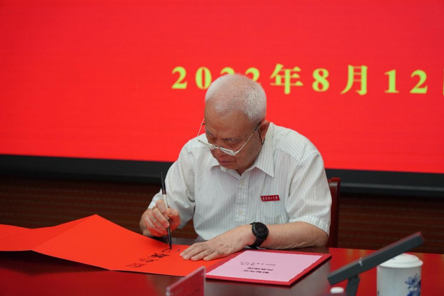 钱七虎院士现场题写班训——“勤勉笃实,科教报国”。