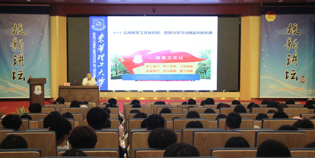 讲座中,刘紫春阐释了民族精神和核军工文化的丰富内涵,阐明了中国第一颗原子弹爆炸成功的重大意义,讲述了东华理工人在核军工文化浸染下涌现出的先进个人事迹。他勉励青年学子要厚植爱国情怀,涵养进取品格,弘扬核军工文化,主动肩负起民族复兴之重任,积极投身改革和建设实践,让青春在全面建设社会主义现代化国家的火热实践中绽放绚丽之花。