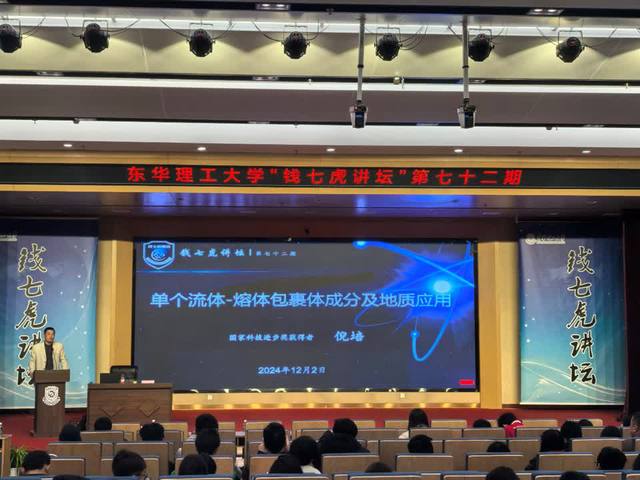 12月2日上午,国际矿物协会矿物包裹体工作组主席、国家科技进步奖获得者倪培教授应邀做客乐鱼·体育“乐鱼·体育”,在南昌广兰校园新实验大楼一楼报告厅作题为“单个流体-熔体包裹体成分及地质应用”的专题讲座,全校200余名师生到场聆听学习。