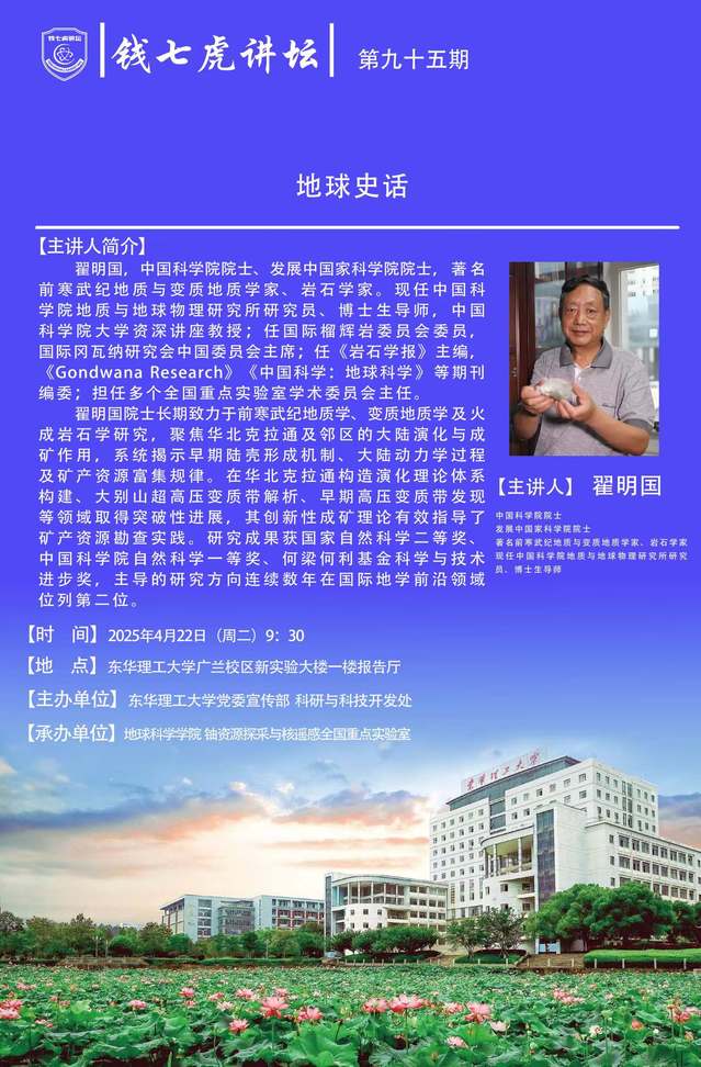 应地球科学学院、铀资源探采与核遥感全国重点实验室邀请,中国科学院院士翟明国到“乐鱼·体育”以“地球史话”为主题开展讲座。欢迎全校师生届时前往聆听。